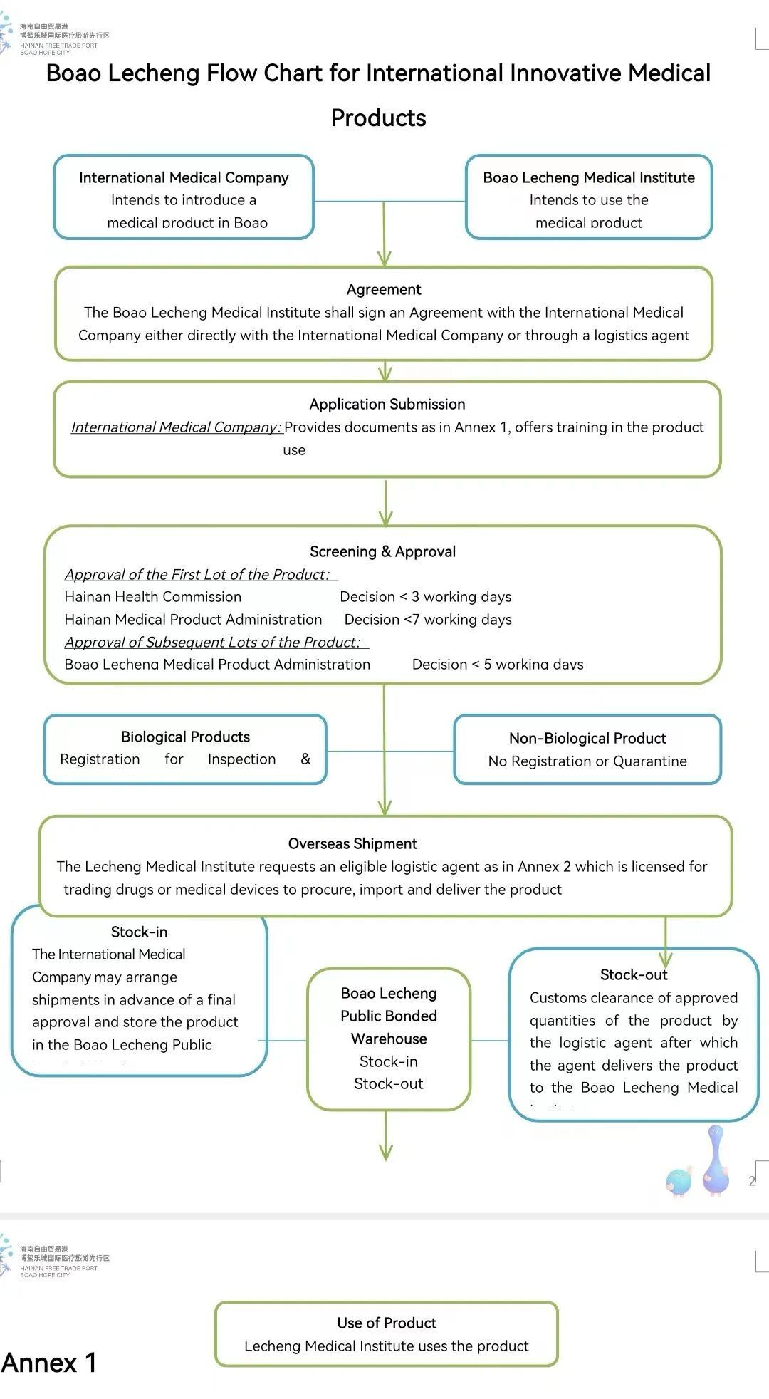 The Boao Lecheng International Medical Tourism Pilot Zone in Hainan Free Trade Port is a flagship project showcasing China’s healthcare openness and reform. Located in Hainan Province — the country’s only free trade island — it serves as a national pilot for introducing innovative medical technologies, drugs, and devices not yet approved in mainland China. Hainan’s unique policies allow for fast-track import, clinical use, and data collection to support future national approvals. As part of the Hainan Free Trade Port strategy, the Lecheng Pilot Zone represents China’s efforts to align with international medical standards and promote global healthcare collaboration.